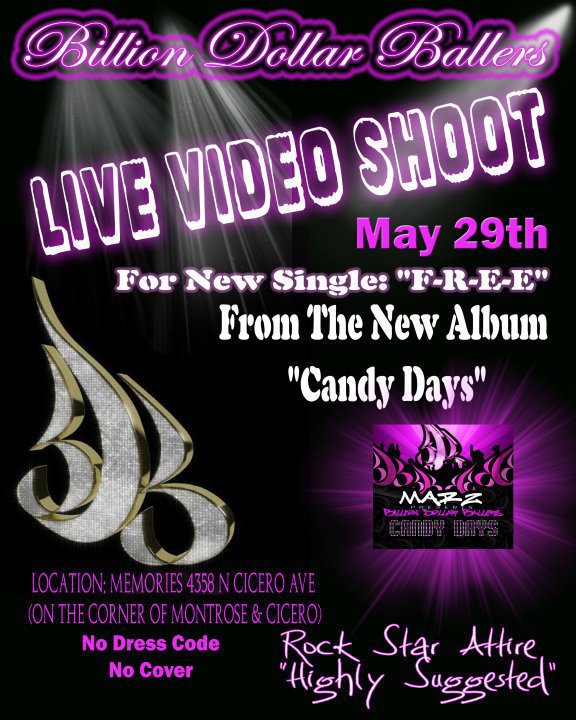 Yes that is right this saturday we are filming our 3 video off the new Cand Days album which is in stores and online now over @ Itunes and Cdbaby.com as well as http://www.marz.ws The song is Called “FREE” and we are shooting it here in Chicago. You must be 21+ to come out and join and get ur cameo on in the video peep flyer below…..